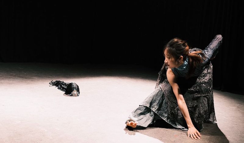 Review by Yanmei Bowie One trained at the Beijing Dance Academy, the other at Falmouth University, Yuxi Jiang and Lucca Vaccari – together Yucca Dance – set off to explore the perpetual cycles that bind our existence, creating the dance theatre piece In the Round, as recipients of the Edinburgh Festival Fringe Keep it Fringe Fund. They perform in a small studio – about five metres in width and barely three metres in depth – but this is the Fringe, so every possible performing space is used. The show starts with the female dancer Jiang appearing on the stage in a contemporary version of a Tibetan costume and headdress. Accompanied by modern electronic music with Tibetan elements and with her back to the audience, she moves her arms, hands and head in a slow but controlled way. I knew at that moment I was going to enjoy it. Then she takes her headdress off and carries on with her solo dance. A moment later, Vaccari comes on, and they dance together. Jiang then loses her Tibetan costume and dances with Vaccari again in contemporary everyday clothes. Their movements and costumes bring us back to the modern world: fragmented, distracted and repetitive. In the middle of the performance a black-and-white film is projected where we see Jiang and Vaccari dancing in an outdoor space with many circular lines on the ground. They explore various movements in the round. Together and parting, connected and broken, found and lost. They are looking for something, perhaps an answer or a destination. The music is electronic with a stuttering effect. Some people might find the sound and the constant spinning camera slightly unsettling or dizzy. After the film, Vaccari comes back on stage and performs a powerful routine on the floor. Shortly after, Jiang joins in, and they dance together again while voiceover featuring interviews in different languages is played. People talk about the nature and meaning of circles in life while Jiang and Vaccari carry on their own spiritual journey and looking for their own answer.